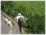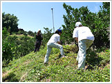 午前は木の根の周りに生えている雑草の除草作業をしました。