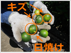 午後はより良いみかん作りのために傷が付いているもの、日焼けをしているもの、虫や鳥の被害に遭っているもの等を間引く作業でした。