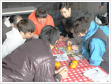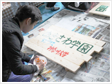 ピールアート作りの後は、あきさわ園・FDA・神奈川大学・リブラスの4団体合同イベントを記念した看板作りを行いました。