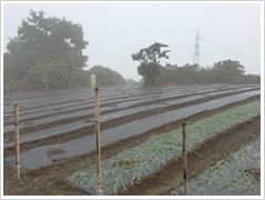 二人一組になって、一列ずつ植え付けを行っていきます。たまねぎ畑周辺は霧がかかっており雨も降っている状態でしたが、植え付け始めると悪天候などまったく気にならないほど熱中していました!まだ今は細い苗が半年間を経て大きな玉ねぎに成長していくのだと考えると、いつの間にかひとつひとつ丁寧に愛情を込めて、植え付けを行っている自分がいました。