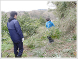 その後竹林へ移動し、伐採した古い竹を移動させる作業に移りました。竹は約60年の寿命で、今回のように寿命が過ぎた古い竹は伐採する必要があるということを学びました。