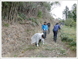 まず最初の活動として、あきさわ園近くの小道を歩き、神社へ豊作祈願にいきました。
