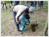 探していくうちに筍を発見!見つけたものは、くわで掘り起こして収穫です。