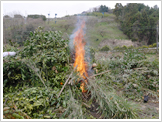 そして更に移動し、午前中に処理した古い竹や、雑草に火をつけてたき火を行いました。学生さんたちが手際よく準備を行い火をつけていきます。火がついてからも、枝や木を随時投入していかないと火が弱まっていくので、片時も目が離せません。社員一同必死に働きました笑