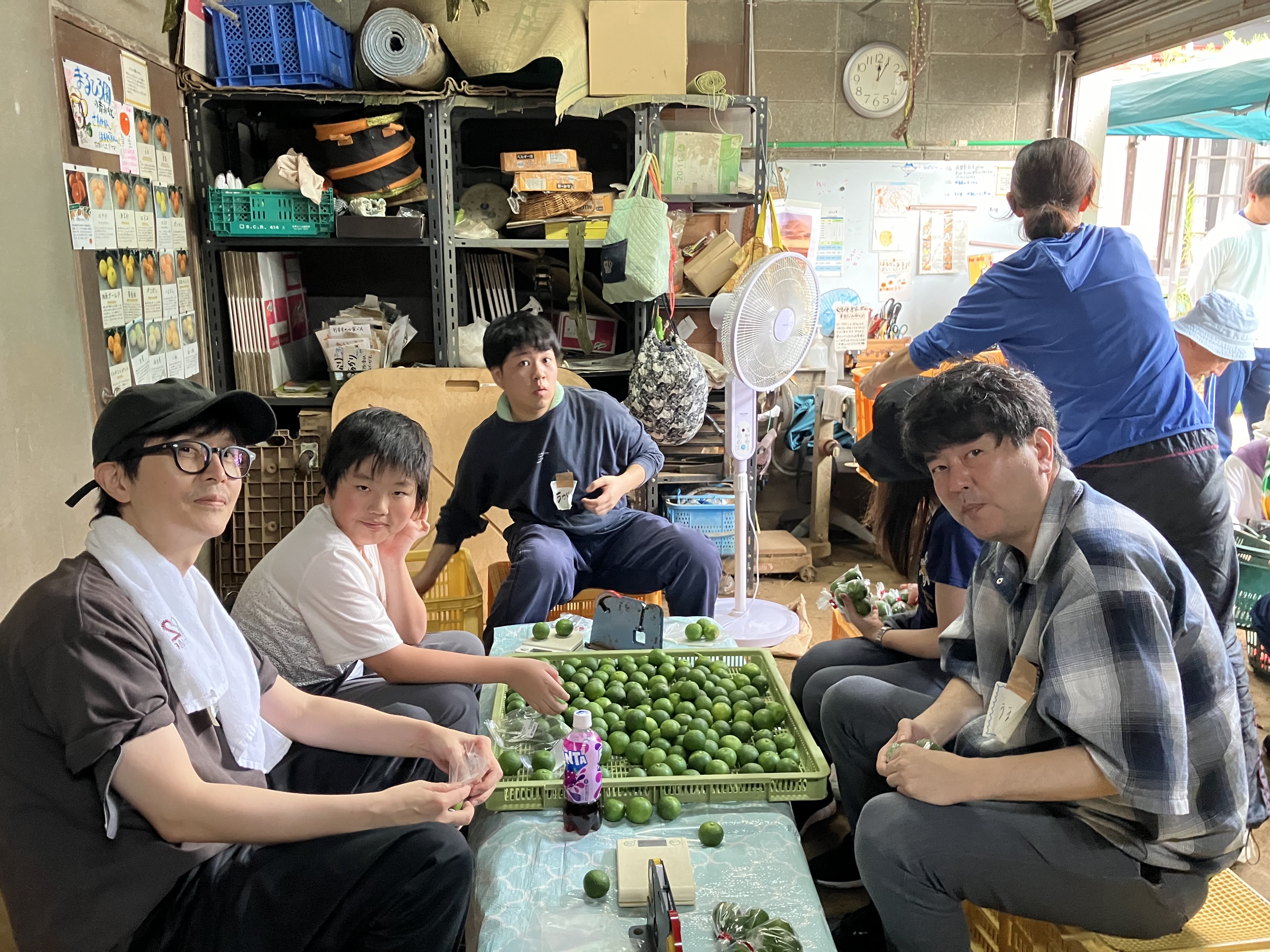 カボス・すだちの袋詰め班は栗拾い班が戻ってきたときには既に作業を始めており、眼前に広がる大量のすだちを一心不乱に袋に詰めていました。