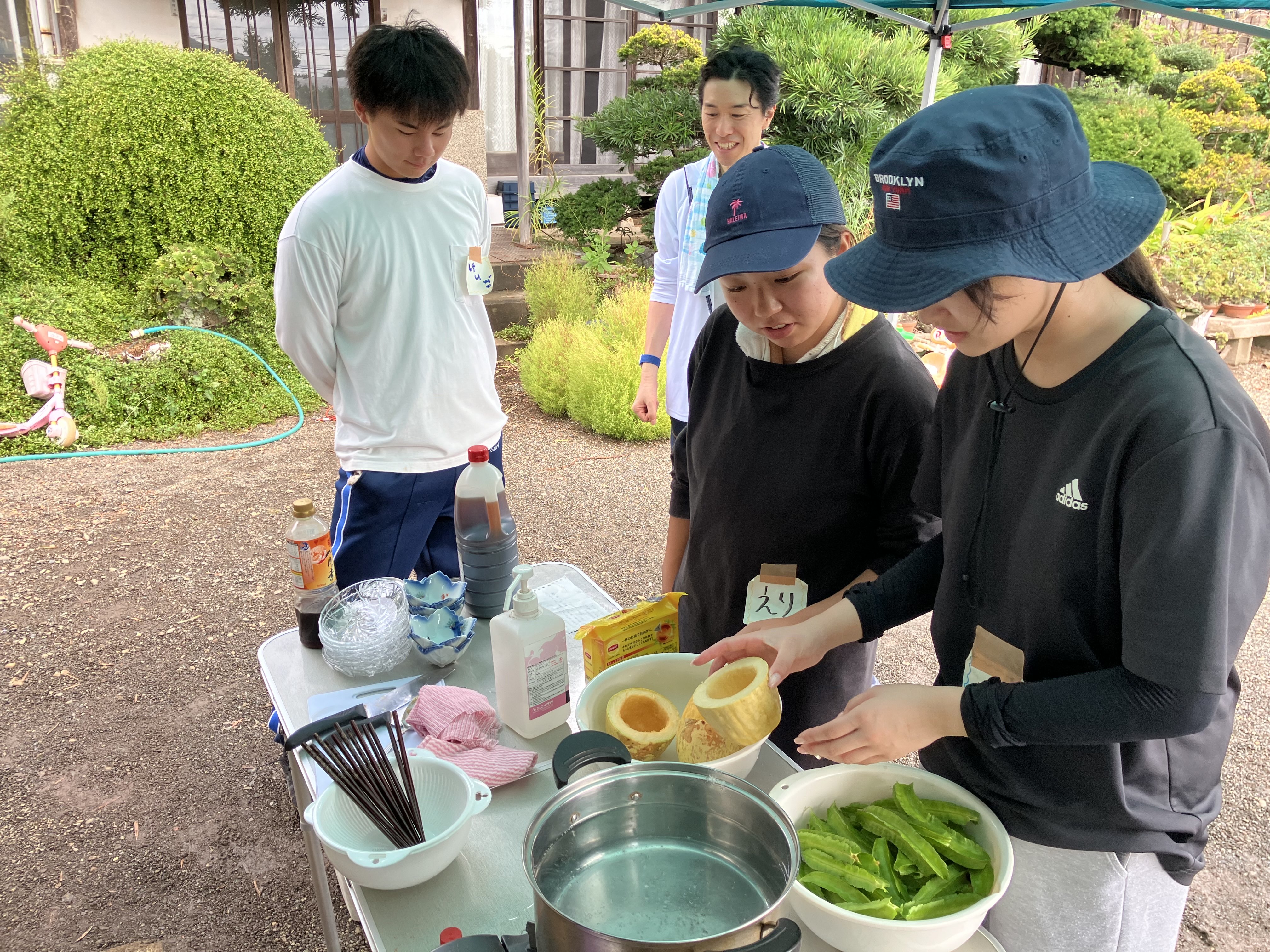 調理班は収穫した四角豆や、原さんが事前に用意して下さったソウメンウリを使用して、昼食の準備を行いました。